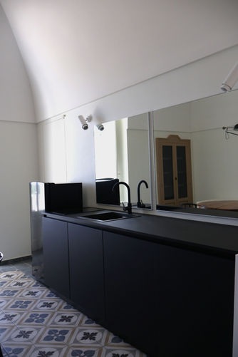 Entrando, si viene accolti da una moderna e attrezzatissima cucina di design, con piano cottura a induzione, frigorifero e tutte le stoviglie necessarie per cucinare in libertà. L’ambiente soggiorno-cucina si apre su un balconcino vista mare, dove il panorama si fonde con la brezza marina, mentre una veranda privata affacciata sul giardino regala un angolo di relax tutto da vivere.