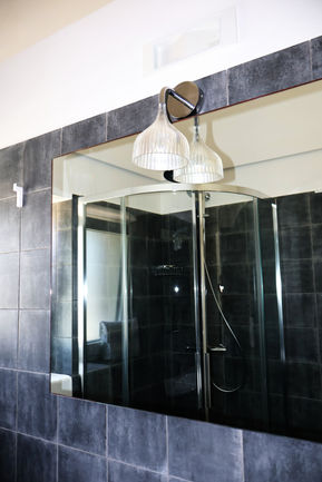 Il bagno privato, ampio e moderno, è dotato di una doccia spaziosa, set cortesia e finiture eleganti. A completare il tutto: TV a schermo piatto, lavatrice, aria condizionata, e ogni comfort pensato per farti sentire a casa, lontano da casa.